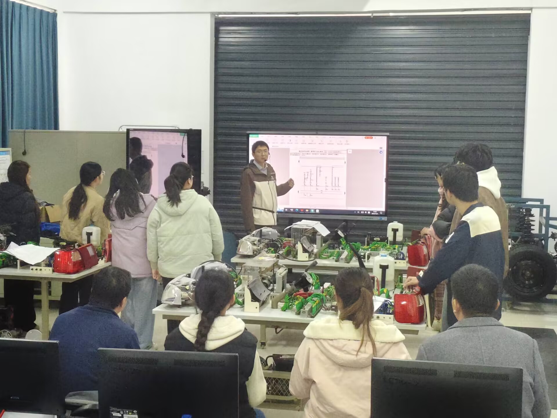 本次实训紧扣行业岗位需求,明确核心目标:让学生掌握报警灯、电喇叭电路原理,规范使用检测工具排查短路、元件损坏等故障,培养团队协作与职业素养。课前姚华老师完成实训台架调试、故障预设及分组任务分配,保障实训有序推进。